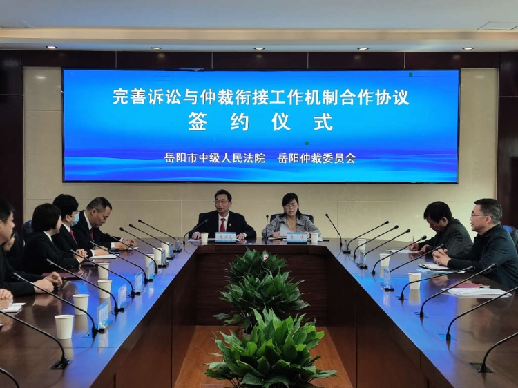 此前,岳阳仲裁委员会与市中级人民法院就落实社会治理创新要求、融合职能优势等方面工作细则进行了多次沟通对接,最终形成了完善的、契合本地实际的、具有指导意义的诉仲衔接合作协议,以做到“稳”有举措、“进”有标尺。